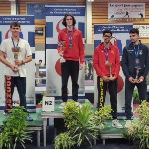 Des places d’honneur également pour nos tireurs puisque Clémence Verley de Thonon qui est encore M13 cette saison prendra la 6ème place au sabre Dames, Circée Desmeret de St Paul finira 7ème à l’épée Dames et Théolan Vildrac de Tassin finira quant à lui 6ème à l’épée Hommes.