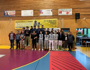 Les championnats de France s’enchaînent depuis quelques semaines et nos Auralpins sont revenus médaillés, voire titrés pour certains, retour sur les résultats marquants de nos tireurs avec tout d’abord, l’épée :M17 à DouaiFanny Catinon de Grenoble Parmentier est passée tout près de devenir championne de France en s’inclinant d’une petite touche en finale (13-12) contre Rembi Rubeen de Levallois.En équipe, Fanny Catinon, Lucie Becq, Maïlys Dalleas et Loanne Bacles Min pour Grenoble Parmentier, s’imposent en N2. Chez les garçons, une magnifique victoire de Bourg Saint Andeol Escrime en finale contre Douai en N1 sur le score de 45/43 avec Xavier Cuadrado, Alessio Ambrosini, Kylian Richard et Noé Duchateau Hache.M20 au HavreBastien Archambeaud de Grenoble Parmentier revient avec une belle médaille de bronze de la Seine-Maritime en N1.Xavier Cuadrado et Alessio Ambrosini de Bourg Saint Andéol, tous deux surclassés en M20, se partagent la troisième marche du podium en N3.Et la consécration pour l’équipe de Grenoble Parmentier composée de Bastien Archambeaud, Nolan Wingerter, Ferdinand Thurin et Max Barlet, championne de France élite face à Nîmes en finale.M23 à CognacOn retrouve une fois de plus des tireurs de Grenoble Parmentier sur le podium, avec Issa Bayram qui devient champion de France des moins de 23 ans, une belle revanche et une continuité pour le Grenoblois qui avait perdu l’année passée en finale. Et également, Baptiste Pelletier qui prend la troisième place pour ces championnats.Séniors (N2) à Castelnau-le-LezAnn-Charlotte Ubaud d’AS Caluire Escrime est devenue vice-championne de France en N2 après une courte défaite 13 à 15 en finale contre Sandrine Dumoulin d’Aix-en-Othe.Les Grenoblois Issa Bayram, Nolan Wingerter, Baptiste Pelletier et Pierre Guillemin sont champions de France en N2, ce qui leur permet de valider leur ticket pour la nationale 1 la saison prochaine.Séniors (N1) à ColmarLes filles de Grenoble Parmentier, Aliya Luty, Océane Tahé, Emma Lauvray et Isis Washington sont devenues vice-championnes de France élite après avoir perdu en finale 35 à 45 contre Beauvais. Elles seront donc présentes une fois de plus à la coupe d’Europe des clubs.Félicitations à tous ces tireurs ! -