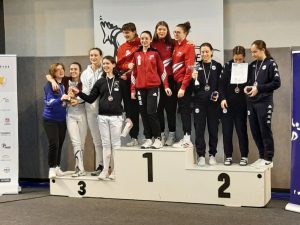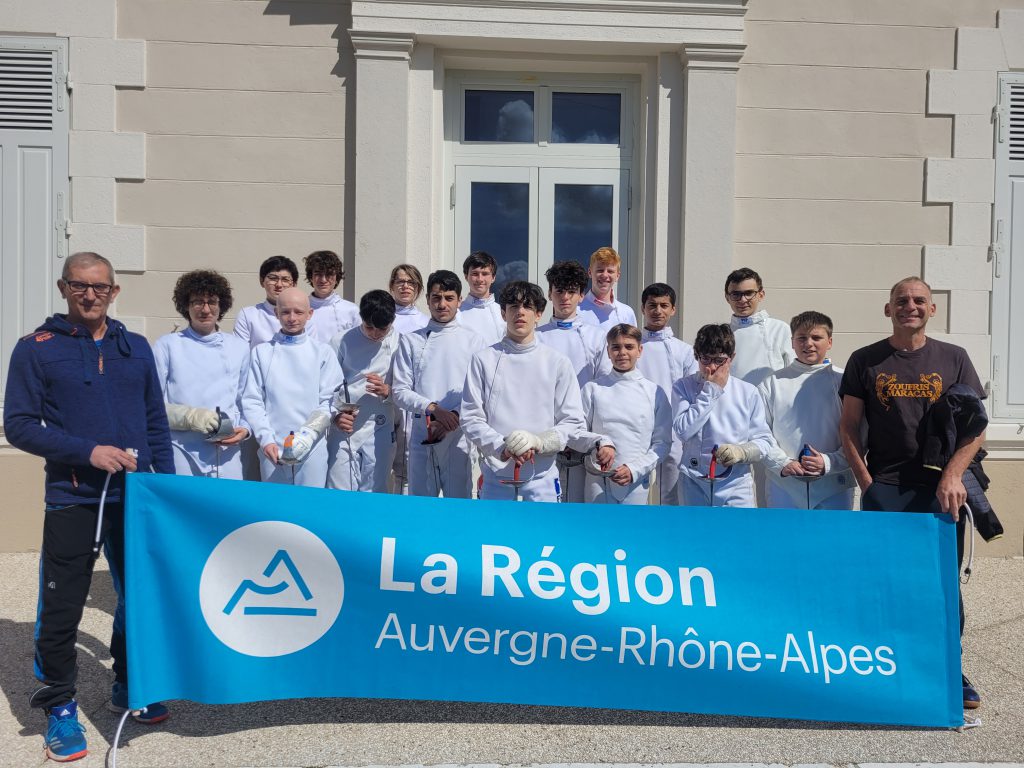 Félicitations à l’équipe AuRA 1 Epée Hommes (CUADRADO Xavier, DUCHATEAU-HACHE Noé, RICHARD Kylian, VILDRAC Théolan) emmené par Adrien Semaille qui monte sur la première marche du podium, à l’équipe AuRA 1 Sabre Dames (BOUCHET Maëlle, MARENGO Yaël, MEGE Agathe, TANCHON Eleonore) avec Patrick Del Monaco en capitaine qui prend la troisième place et la troisième place également pour l’équipe de Julien Dutripon AuRA 1 Fleuret Dames (ANDRIAMAMPIANINA Adèle, BASSET Manon, DUMARCHEZ Zoé, PRATS Mathilde).