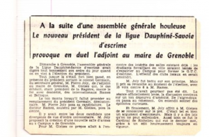 Pour lui rendre hommage, nul doute que Jean aurait apprécié que l’on montre ses trésors, qu’il gardait dans un cahier rouge qu’il avait confié à Michel. Voici quelques pépites. On notera la provocation en duel du Président de la Ligue avec l’adjoint au maire de Grenoble… (sourire).